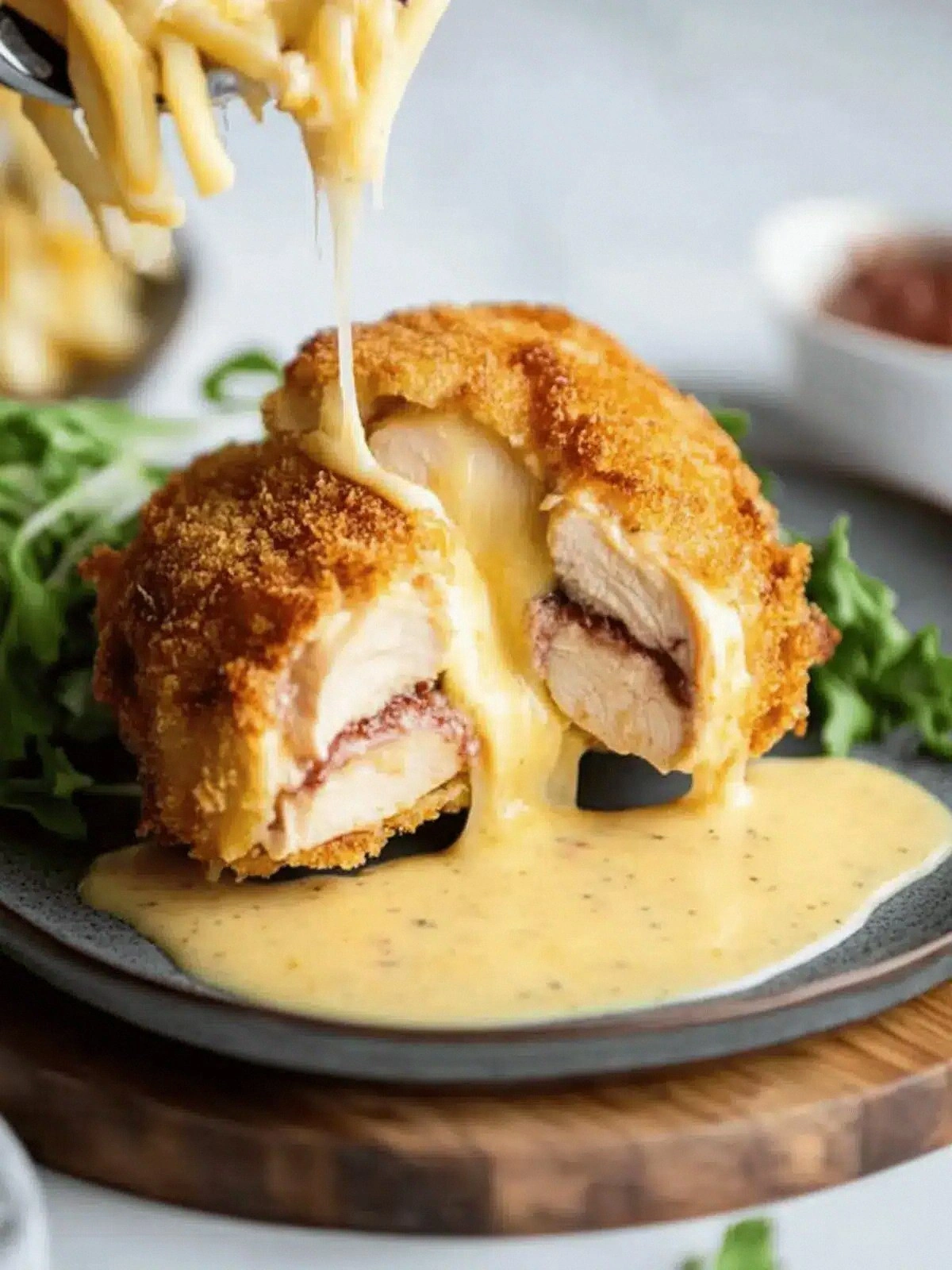 Picture this: a golden, panko‑crusted shell that cracks open to reveal a melty Swiss cheese ribbon, a slice of ham that hugs the chicken like a secret lover, and a sauce that coats the plate like velvet. The aroma of toasted breadcrumbs mingles with the buttery richness of melted butter and the sharp bite of Dijon mustard. The texture is a delightful contrast—crisp on the outside, tender and juicy on the inside. If you’re skeptical, I dare you to taste this and not go back for seconds. Trust me, the first bite will leave you wondering how you ever made it any other way.